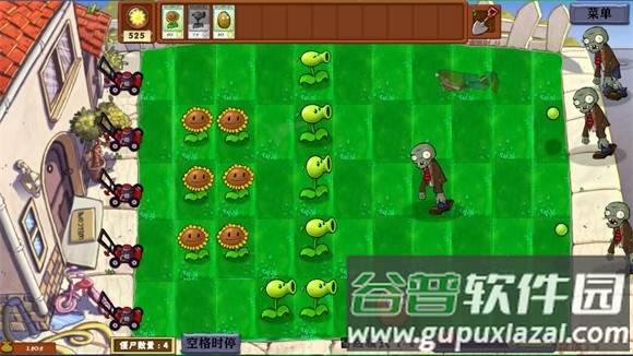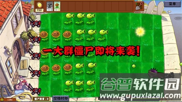 6、屏幕右下方的进度条代表关卡进程;进度条满时会出现一大波僵尸,成功击退这波攻势即可通关。
