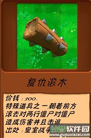 8、复仇滚木:向前滚动,对两行僵尸造成伤害并产生击退效果。