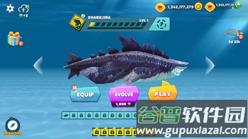 游戏版本已破解,提供无限宝石与无限复活功能;你可以随心所欲地探索,前往任何区域;所有鲨鱼均可用宝石直接解锁,开局便是最强的猎食者。