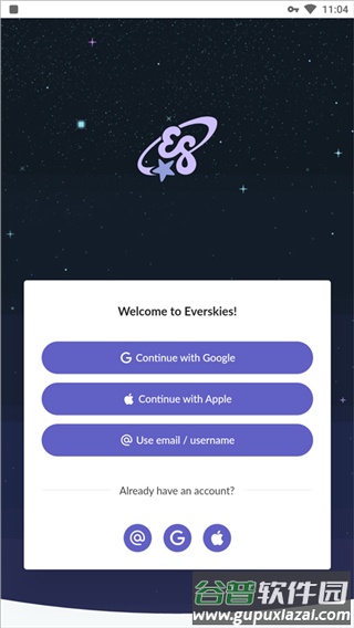 1. 打开Everskies官方版,即永远的天空虚拟装扮,使用加速器启动后,点击“@ Use email”进行账号注册。