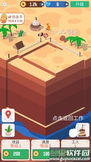 3、点击屏幕可以加速工人的挖矿效率;工人每行动一步都会获得一定数量的金币,这些金币可用于后续升级。