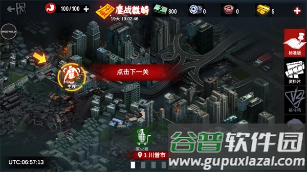 游戏主界面直观展示可挑战关卡,玩家能在此进行战前准备,包括购买装备、升级武器或补充弹药。为了清除城市中的丧尸并保护幸存者,玩家需深入各条街道展开近距离战斗。