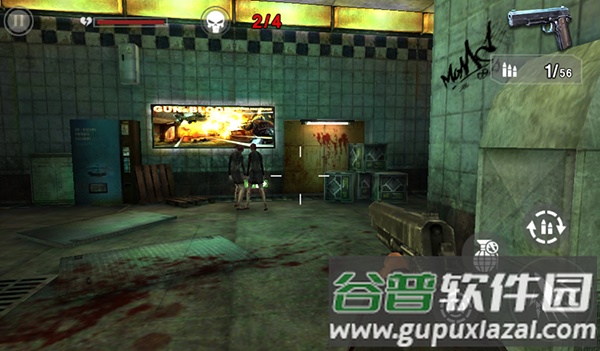 2、游戏采用横屏界面,左手滑动可调整观察视角,右手则控制开枪、精准瞄准以及更换弹匣等操作;