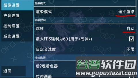 5、关键设置已用红线标记,其他未标记选项可按图示选择,渲染模式建议选缓冲渲染,帧缓冲读入内存与显存选项效果一般,跳帧可选自动或手动设定;