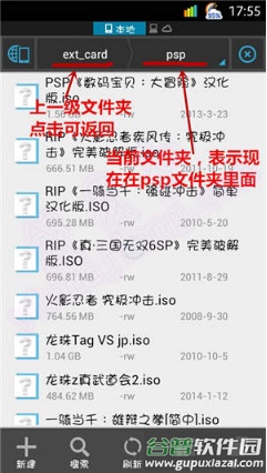 1、首先下载PSP游戏镜像文件,主要为.iso格式,将游戏复制到手机某个文件夹,例如放置在外置存储卡ext_card的psp文件夹内;