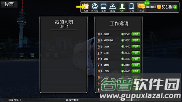 2、员工聘用:玩家可亲自驾驶,也可雇佣司机来维持公司运营并创造收益;