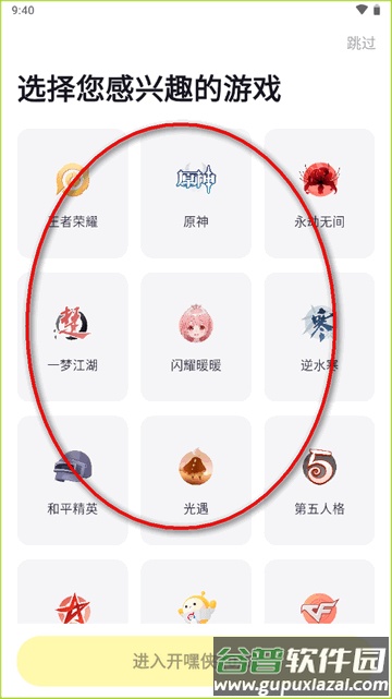 4、登录成功后,可选择感兴趣的游戏标签,也可直接跳过此步骤;