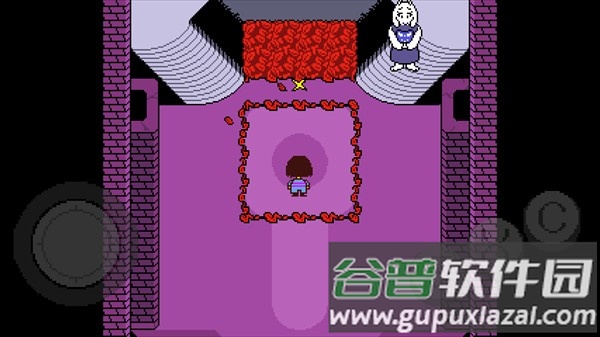 2、跟随Toriel来到遗迹入口,在花丛中可发现首个保存点星星;Toriel直接表示此处将成为你的新家;进入北面房间后,Toriel会亲自解开谜题,玩家只需穿过北门继续前进。