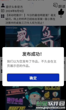 4、发布成功后,稍等片刻就能在应用主页看到自己发布的内容了。
