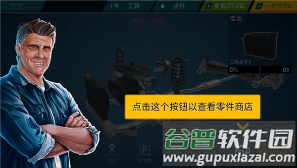 8、点击商店按钮,进入零件商店选购新配件;