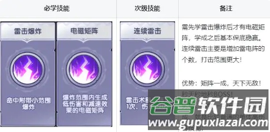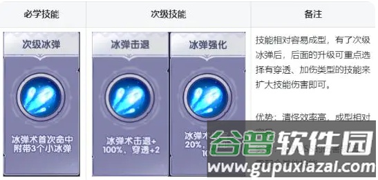前期主力技能建议选择冰弹术与雷击术,火球术可作为伤害补充;战车主要用于减速拖延,不推荐作为主攻技能;火龙弹前期作用不大,角色达到8级后可考虑风能波等群体攻击技能。