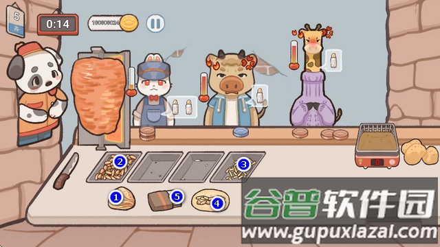 1、游戏要求玩家依据动物顾客的喜好,挑选合适的食材与调料,组合出风味各异的沙威玛卷饼。
