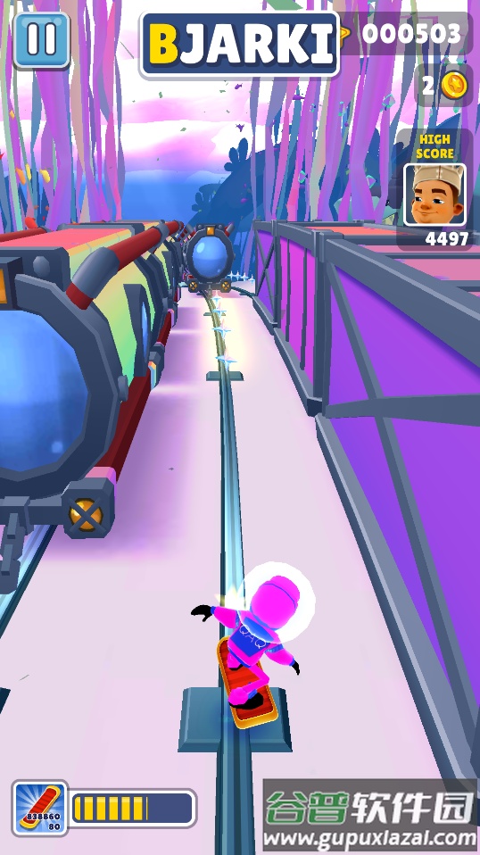 音效设计生动真实,地铁轰鸣、风声呼啸都增强了奔跑的紧张氛围。游戏采用无尽模式,没有固定终点,玩家可不断挑战自己的最高纪录。游戏内容适合各类玩家,无论是休闲娱乐还是追求高分,都能找到乐趣。