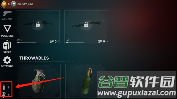 3、游戏允许玩家在武器库中携带两把主武器,投掷物则均可配备;