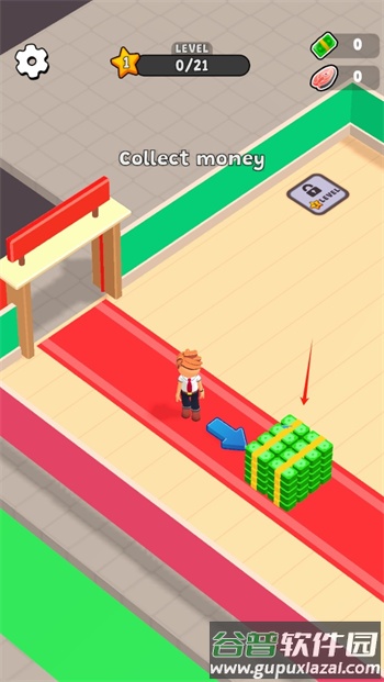 1、按照画面引导点击或滑动,拖动角色移动到金币堆旁,角色会自动开始收集金币;