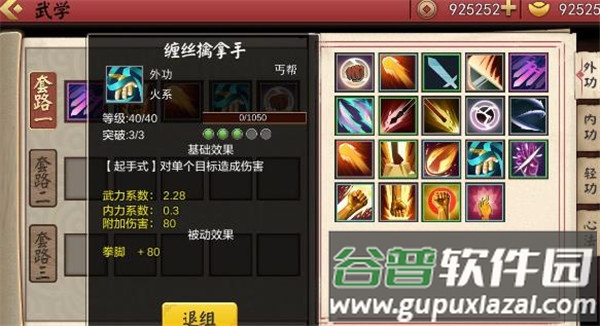 加入门派后开始循环任务积累贡献,学习技能需要消耗贡献。其中一环任务需求青金石(白虎山产出,掉落率一般),多刷几次总能获得。技能分为外功与内功,选择时请看清加成差异。内功资质较低的角色可专注外功路线。