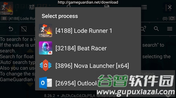 在GG修改器内选择目标游戏的运行进程。