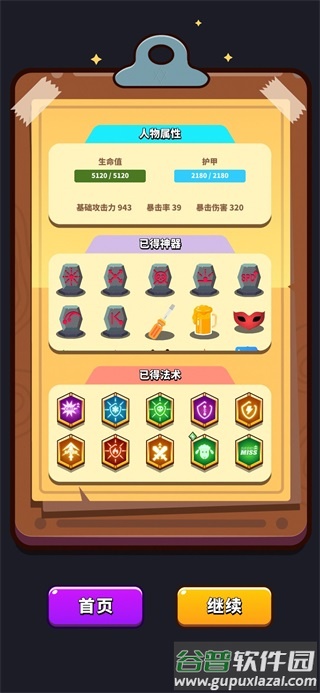 5.法术推荐:五裂甲、能量涌动、闪避、暴击、攻速、变形术,优先获取除五裂甲外的法术;裂甲法术拥有概率加成,较易集齐;若到达80关仍未获得闪避法术,战斗将变得异常艰难。
