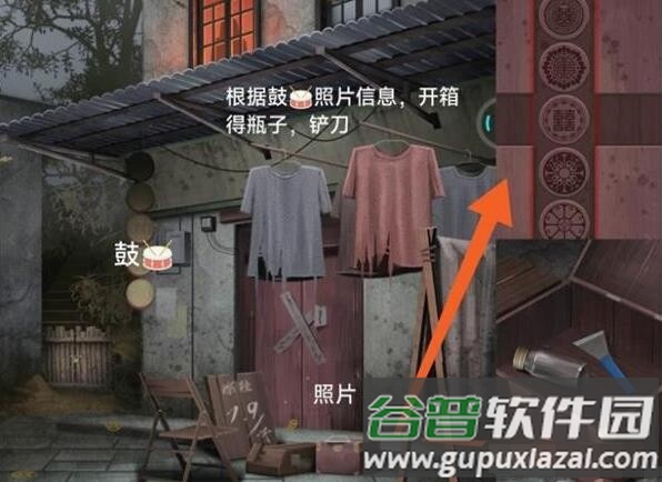 5、依据鼓上照片的信息,打开箱子得到瓶子和铲刀。