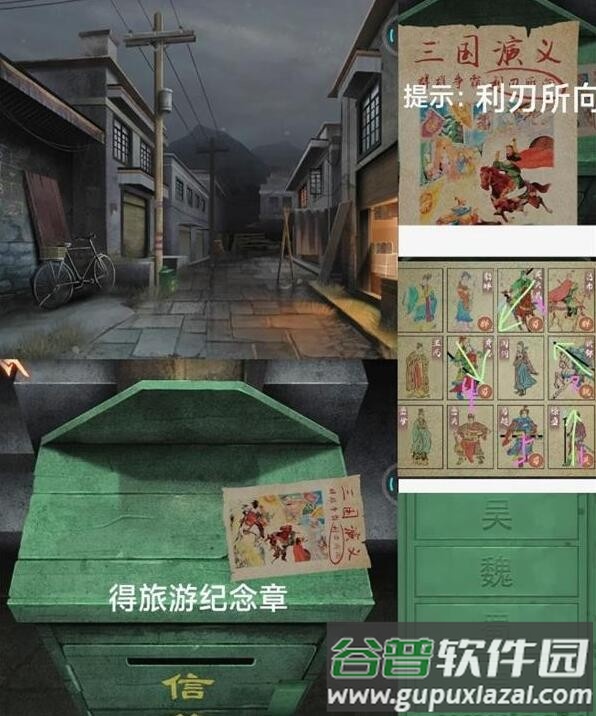 7、根据“利刃所向”的提示,解出旅游纪念章。