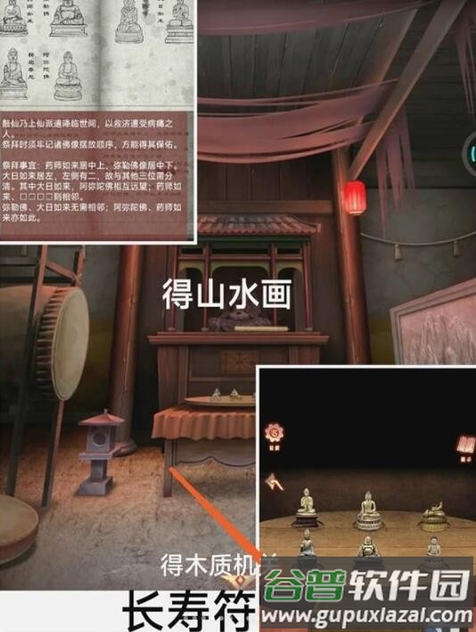 11、点击得到山水画与木质机关。
