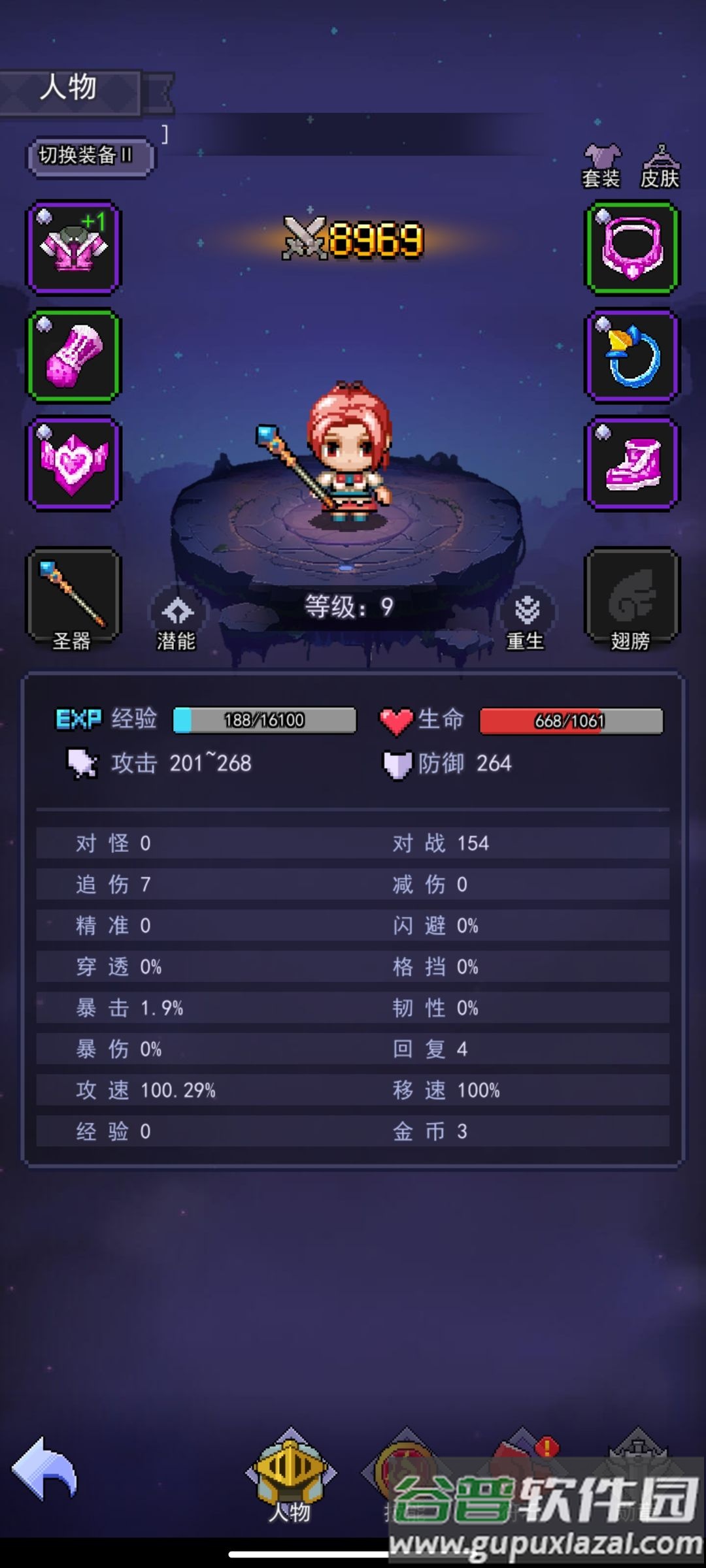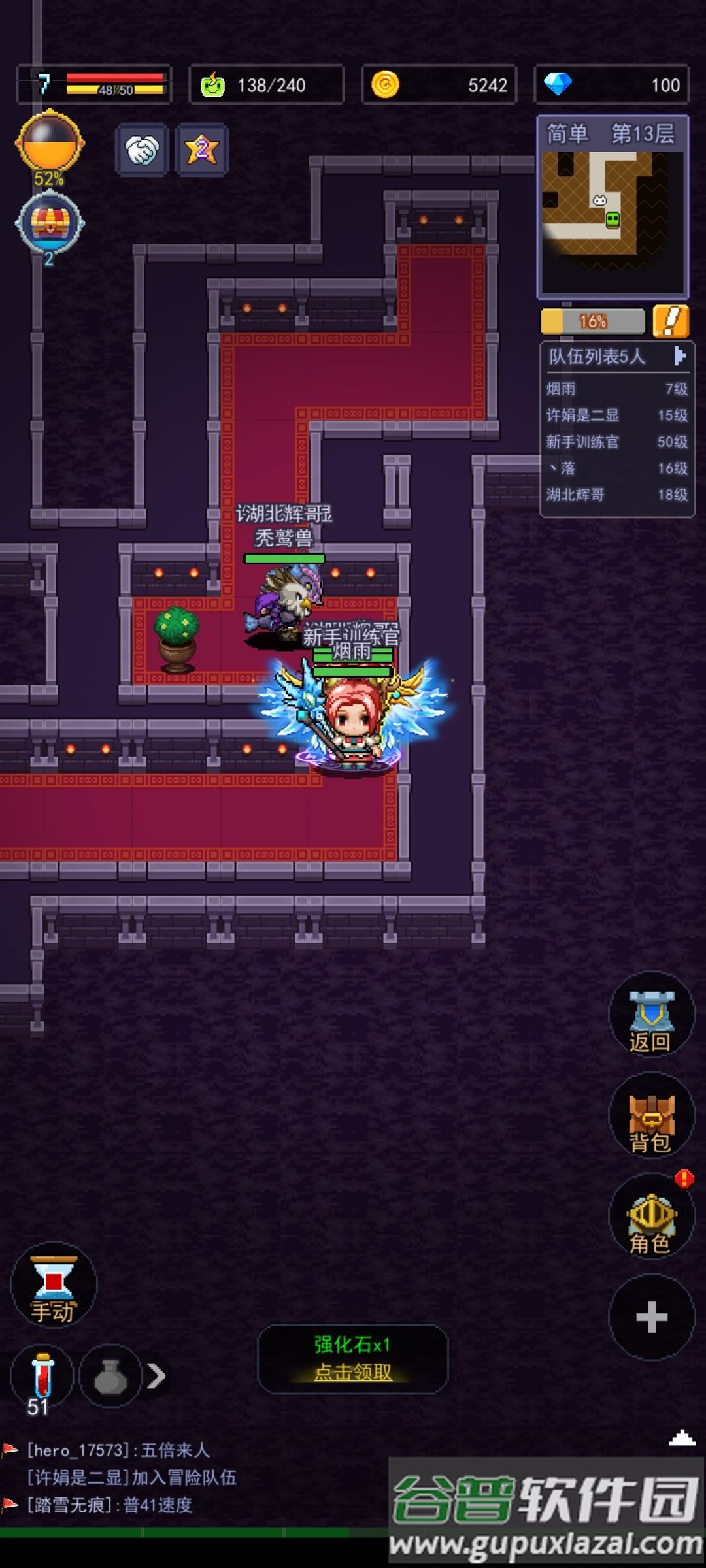 游戏采用竖屏操作界面,并设有自动战斗功能,是一款适合休闲娱乐的作品。玩家每击败一层所有怪物即可进入下一层,同时收获各类奖励。