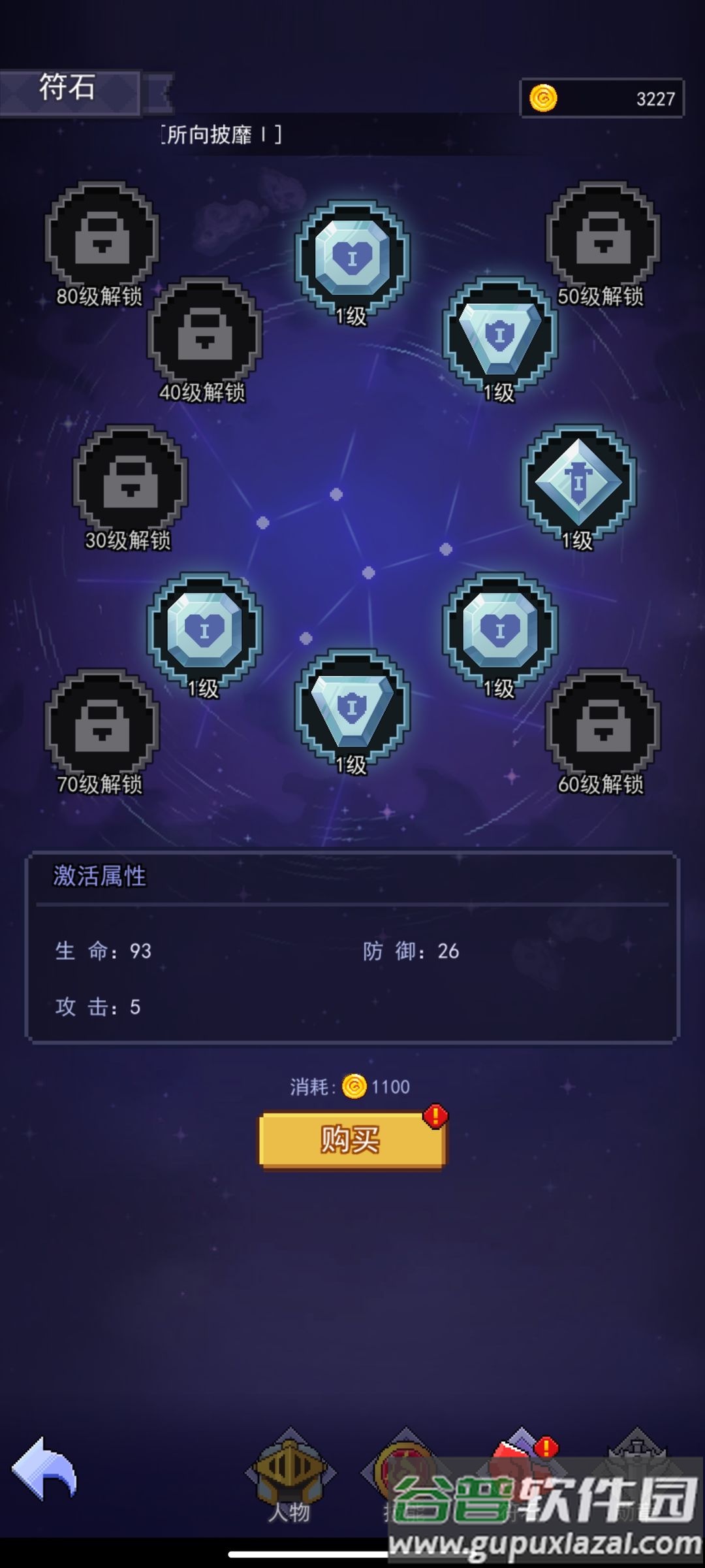 通过购买并升级符石可以提升战斗力;随着角色等级提高,将解锁更多的符石镶嵌位置。