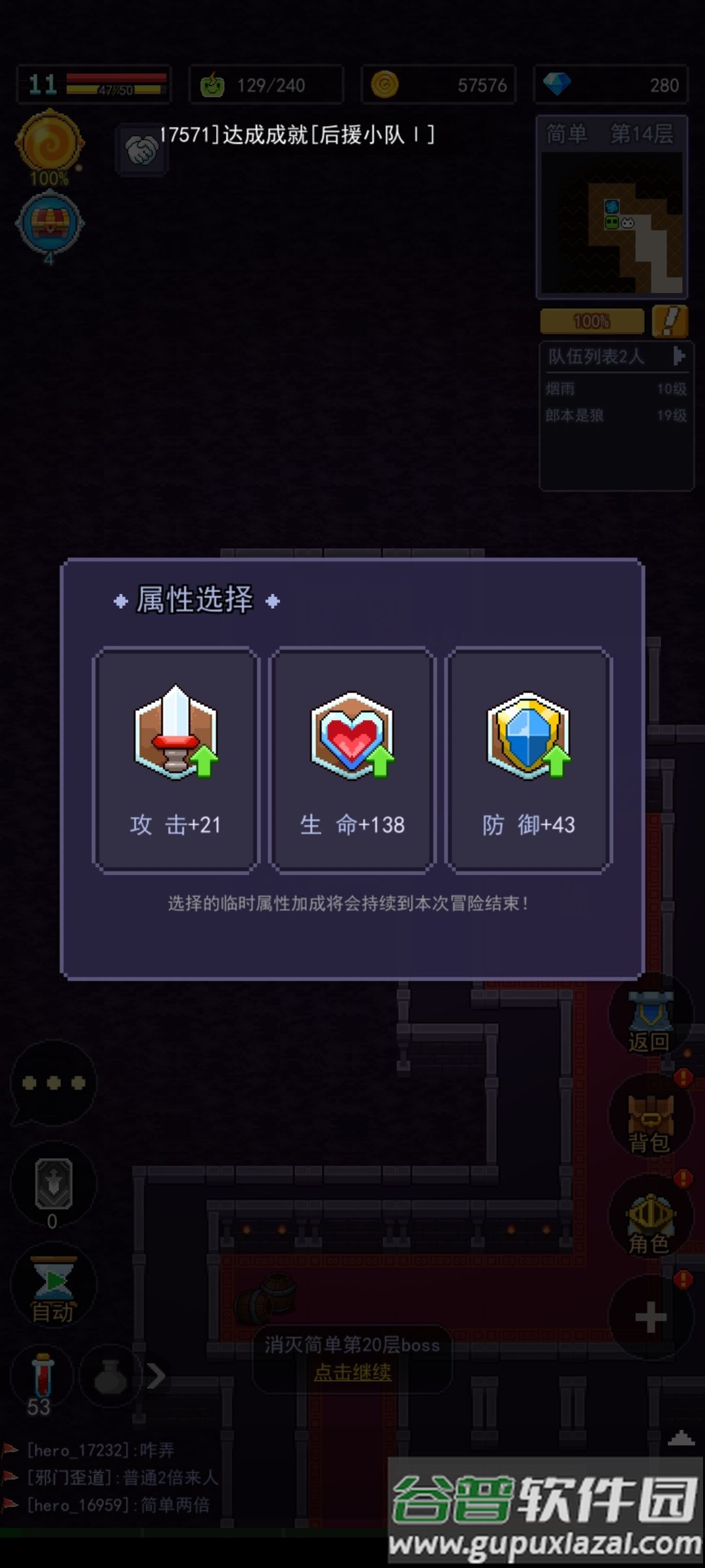 在关卡中消灭怪物会积累进度,当界面左上角进度条满100%后,即可选择一项临时增益效果。