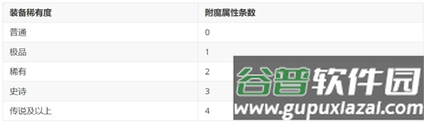 其次是附魔属性,其条数与装备品质相关;可在锻造台进行附魔。附魔属性有五种品质:普通(白色)<极品(绿色)<稀有(蓝色)<史诗(紫色)<传说(橙色)。不同部位可附魔的属性不同,具体可在游戏附魔界面点击右上角蓝色按钮查看。