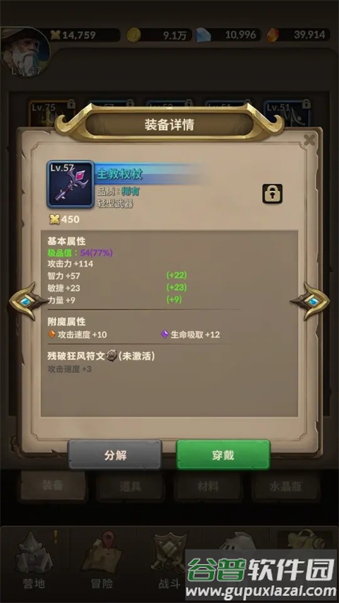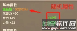 以此装备为例,基本属性为攻击力+60,智慧+20;随机属性为智慧+29,力量+23;极品值为29+23=52;通过精炼可达到的最高极品值约为52÷92%≈56至57。