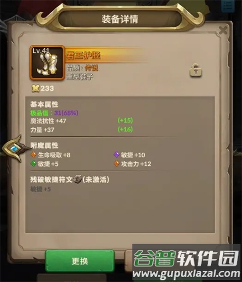 然后是装备属性板块,包含基本属性、极品值、附魔属性与符文。