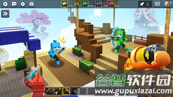 通过收集资源可购买各类方块、剑、弓箭、火焰弹、陷阱等多种道具;击败对手的方式多种多样,近身搏斗、远程射击或是巧妙设伏,只要你能想到,就有机会实现;
