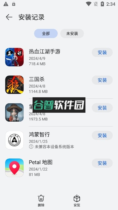 进入安装管理页面后,留意右上角,点击那个“记录”图标。