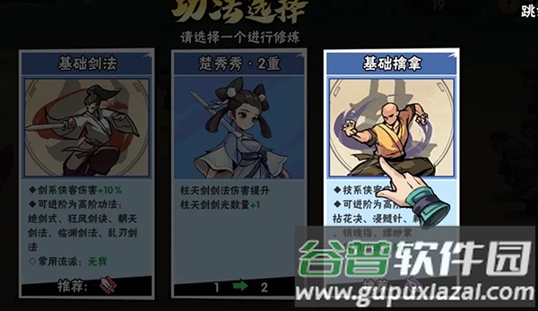 8、当少侠习得任一职业的一阶功法后,再次获取卷轴便有机会学习该职业的二阶功法;例如图中可选择修习剑系二阶功法——临剑式。