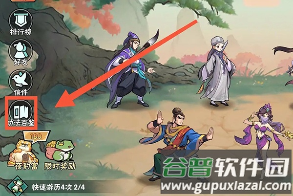 10、少侠可在主界面左侧进入“功法百鉴”,查阅全部一阶与二阶功法的进阶路线;根据队伍侠客提前规划功法升级路径,能有效避免对局中的选择困难或误学功法。
