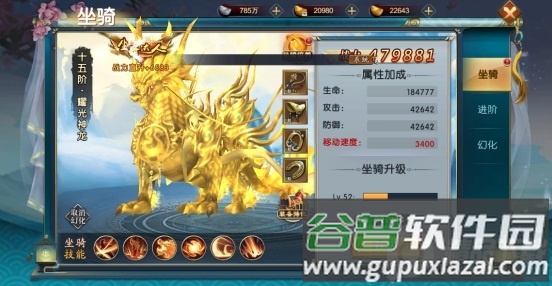 4、坐骑升阶需消耗银两,升级成功即刻提升战力。