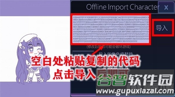 3:将已复制的人设代码粘贴到空白区域,完成导入即可使用。