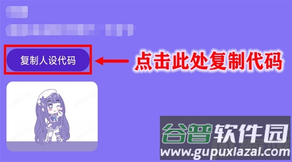 1:挑选心仪的人设样式,点击顶部【复制人设代码】按钮;