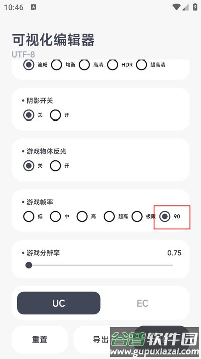 3、通过可视化编辑器可进一步调整游戏帧率,例如解锁90帧或更高帧率模式。