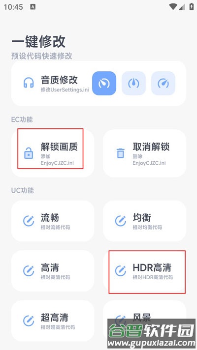 2、进入修改界面后,点击解锁画质选项,然后从流畅、高清、均衡等多种预设中挑选合适的画面清晰度。