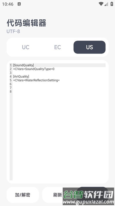 2、内置代码编辑器,支持对UC、EC以及US三种格式文件进行编辑调整;
