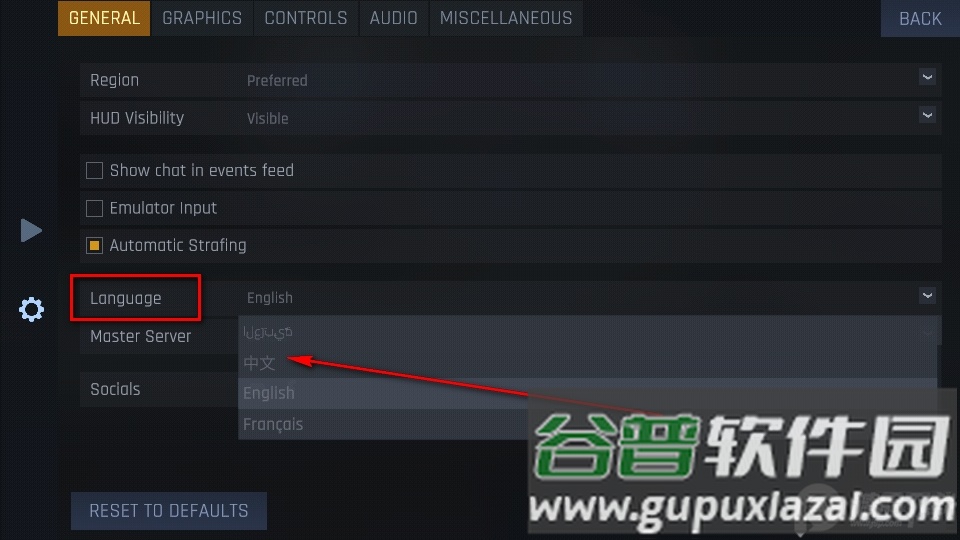 选择菜单中的语言选项,在列表内找到中文标识。