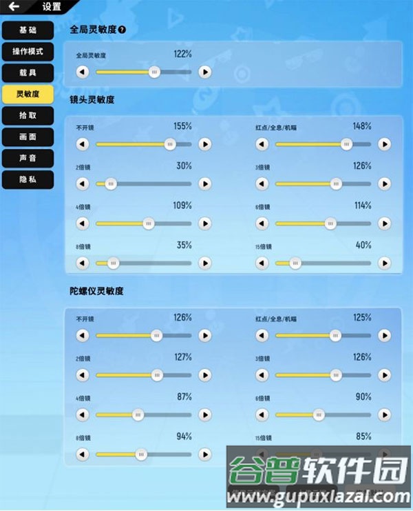 提供三种灵敏度调整方式:全局灵敏度可同步调节所有灵敏度数值;镜头灵敏度调节划屏视角操作反应速度;陀螺仪灵敏度调节体感操控精确度。