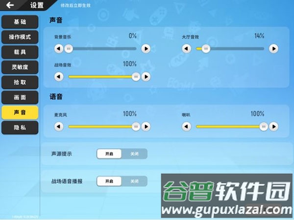 背景音乐与大厅音效:偏好安静环境的玩家可调低或关闭;战场音效:建议调至最大,便于及时获取周围声音信息,早于声源提示标记出现;语音设置:根据实际效果与队友沟通调整语音输出与接收;声源提示:建议开启,附近声音会以标记形式显示在画面上;战场语音播报:建议开启,能及时获取对战关键信息。