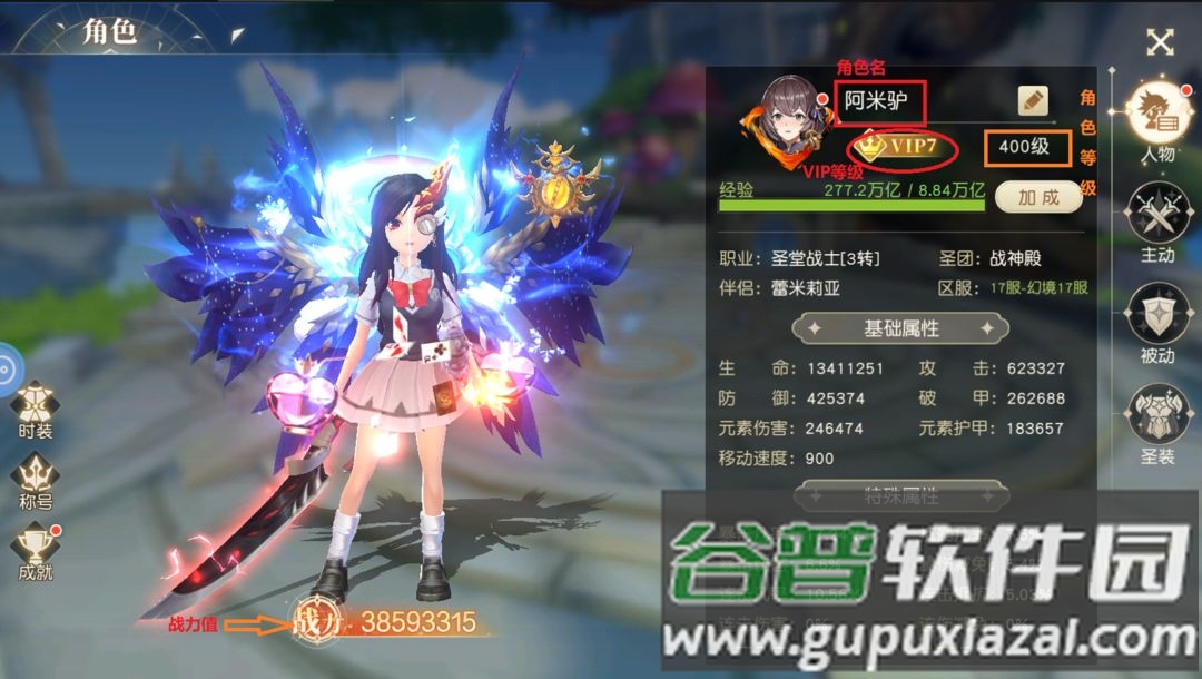 角色系统集中展示了玩家的属性与能力。通过该系统,玩家可以查阅账号信息、详细属性、实装状态、称号、成就、主动技能、被动技能、天赋以及圣装等内容。