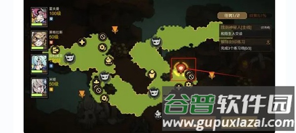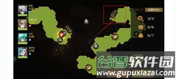 获取上古卷轴需先取得两颗宝石开启机关,对话出现时选择拿走选项;随后跟随箭头方向,通过原本被巨石阻挡的道路即可离开。本关卡将解锁二倍速战斗功能。另一处探索点位处于最左侧尽头的边缘区域。
