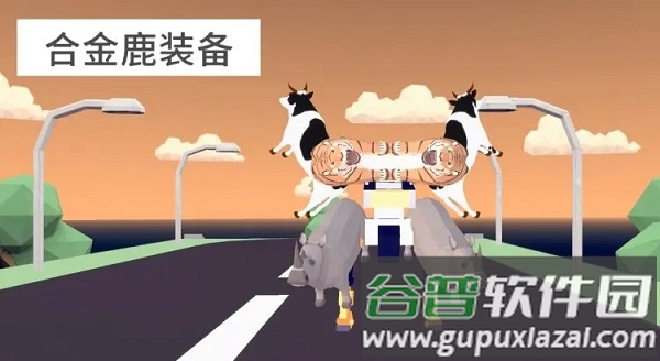 游戏中可见纸板风格的奶牛、老虎与犀牛组合机甲——即合金鹿装备。