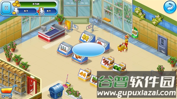 3、关于设施升级,游戏内可升级的对象包括仓库、收银台、货架、清洁工具以及娱乐设施等,部分需消耗钻石,部分使用金币。优先升级货架是明智的选择,因为补货是最频繁的操作,货架容量提升后能大幅减少忙乱,让你更从容地处理其他事务。另外,保安角色十分重要,只有他能有效应对店内乱跑的小孩。