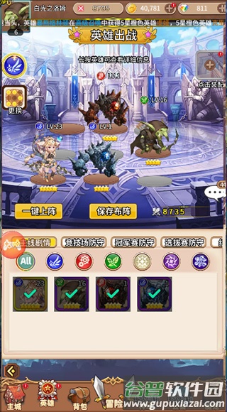 7、根据英雄特点搭配出合适的出战阵容,即可开始冒险关卡挑战。