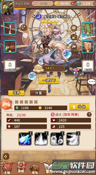 6、进入英雄管理界面,对获得的英雄进行培养与强化,提升其属性与战力。